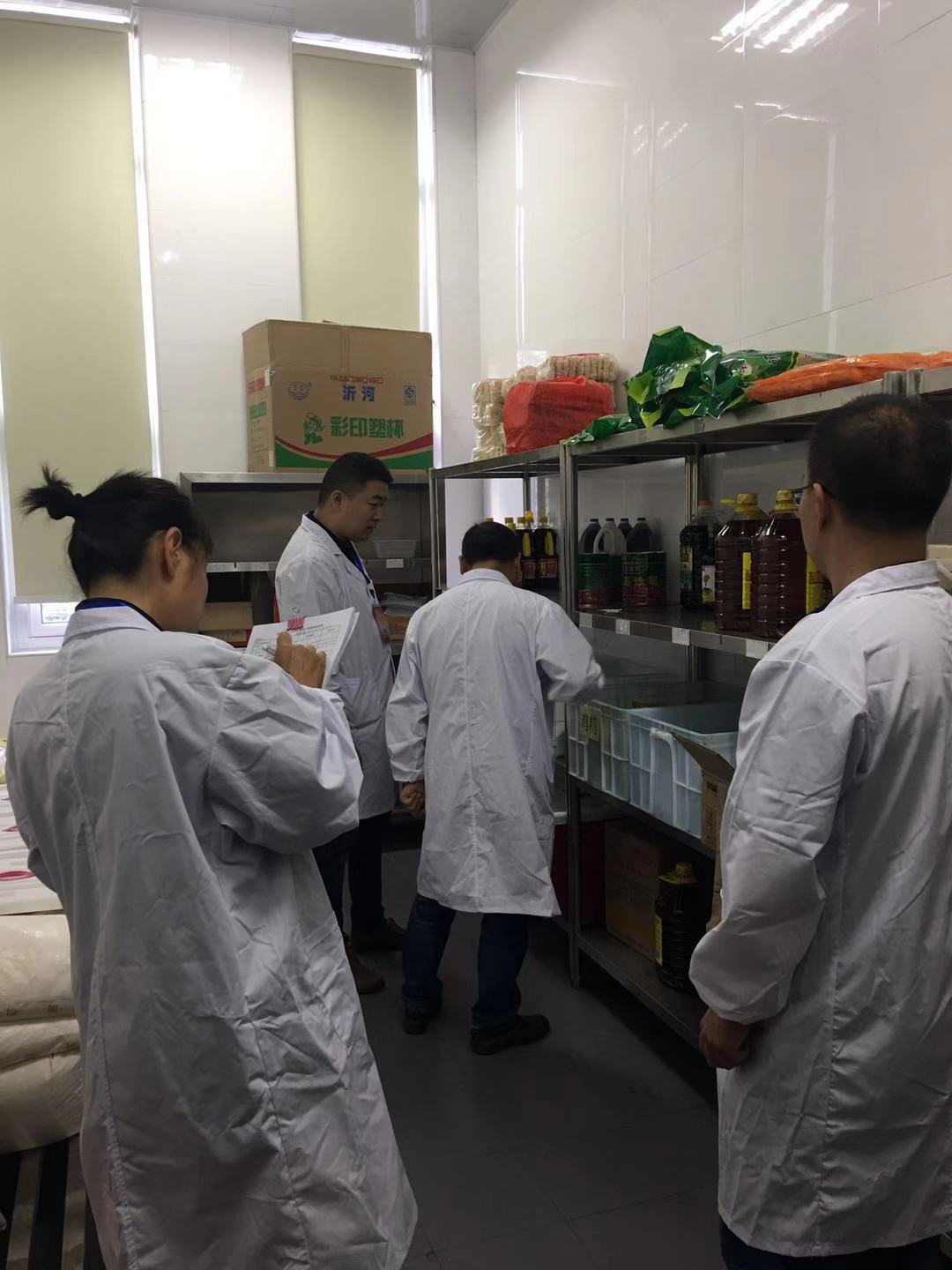 在食堂仓库、加工区、操作区、清洗消毒区等区域,以《中华人民共和国食品卫生法》、《餐饮服务食品安全操作规范》以及与我校签署的《餐饮服务合同》为依据明确责任,分工检查。从原材料的原始进货单据到卫生消毒加工再到食品安全留样等重点环节入手,着重检查整个操作的过程管理,作为横向检查。再以“生鲜肉类”和“食品用油”两项原材料采取“一条龙”的跟踪式纵向检查,从“生鲜肉类”、“食品用油”的产品合格证、出厂日期到材料供应商的卫生许可证、每次进货的进货名细、清洗消毒的过程、上灶烹制的用油情况,甚至到装盘上桌前原材料菜品的摆放位置做了细致的检查和建议。