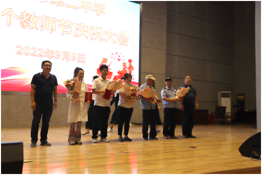 葛洪亮主任分别为获得“徐州市第二中学优秀教育工作者”、“徐州市第二中学优秀共产党员”、“徐州市第二中学‘心中的恩师’”称号的教师代表颁奖。
