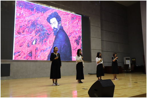 郭靓柔、刁瑞娴、董欣迪、谢丽娜四位新教师为大家带来诗朗诵《红烛》。一首《红烛》表达了千万学子对老师的赞颂和仰慕。老师是红烛,闪耀微弱的烛光;老师是园丁,流下辛勤的汗珠滴滴闪亮;老师把孩子们培养成祖国的栋梁,为伟大祖国奉献青春。