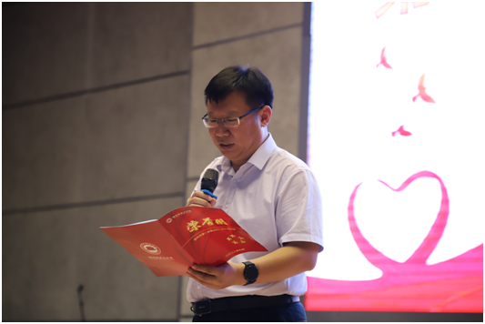 张功忠校长、刘洋校长、刘阳校长分别为获得2021年度获得局考核优秀和优秀教科研教师代表颁发证书与鲜花。