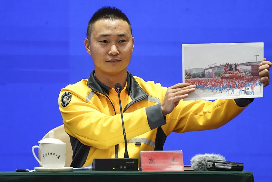 骑手这个岗位时间挺自由,空闲我也会去做志愿者服务,或者是去参加一些党建活动。我感觉,骑手这个岗位其实挺适合我的,尤其是我在加入这个岗位之后还完成了自己的梦想。那是在2019年10月1日,建国70周年群众游行活动,我被公司党委选为优秀骑手代表参加。当时我所在的方阵是第七方阵“当家作主”方阵,今天我也带来了照片,可以给大家展示一下。当时我所在的位置是在花车的右后方,我们这个方阵经过天安门的时候有一个动作,要跳起来欢呼,那天我感觉特别荣耀,特别高兴,所以也是跳得特别高,喊的声音特别大,那次活动我给自己打101分儿。作为一个曾经的军人,其实都有一个梦想,参加一次阅兵,受到全国人民的检阅,但是我没想到的是我已经退伍了很多年了,我还能站在天安门广场前受到全国人民的检阅,这使我万分自豪,特别荣耀。尤其是今天召开这个发布会,我感觉就像黄部长和苏部长所说的那样,这是关心关爱我和我们整个新业态劳动者群体的,让我们以后更加有盼头。以后我也会继续在骑手这个岗位发光发热,服务好居民们,建设好北京。谢谢您。