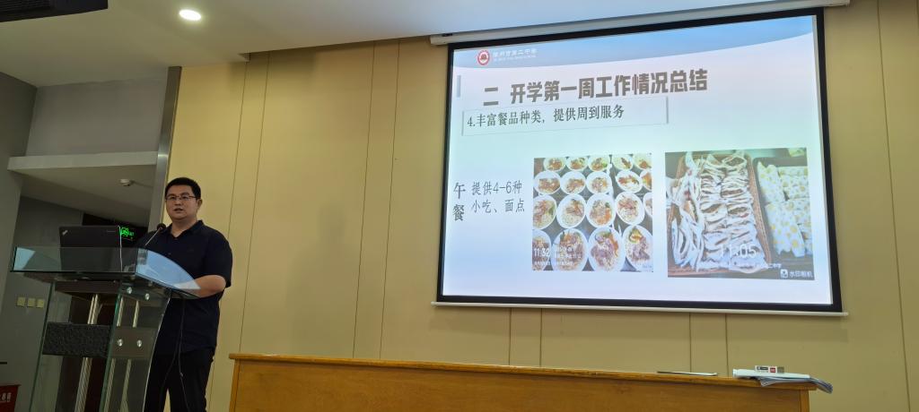随后,分管后勤工作的吴亚男副校长就开学以来食堂的各项工作向家委会做了全面、细致的汇报。吴校长详细介绍了食堂的原材料采购、验收、储存、加工、留样等各个环节的标准化操作流程和严格的管理制度,确保源头可溯、过程可控;阐述了学校如何根据中学生生长发育的营养需求,结合季节特点,科学制定每周食谱,确保菜品搭配合理、营养均衡;介绍了食堂在丰富菜品种类、提升烹饪技艺、保证饭菜口味与温度等方面所采取的具体措施。吴校长的汇报全面透明,让家长们对学校食堂规范、严谨、科学的工作有了更加深入的认识。
