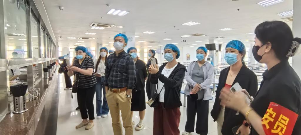 汇报结束后,在校领导的陪同下,家长委员们深入食堂后厨,进行了“零距离”的实地参观。家长们依次查看了主食仓库、加工间、烹饪间、消毒间等区域,对食堂整洁卫生的环境、规范有序的操作、先进完善的设备留下了深刻印象。