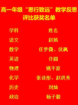 10月16日,高一年级处进行了青年教师教学“六认真”例行检查,同时启动“思行致远” 优秀教学反思评选活动。赵旭等9位教师在教案中呈现出精彩深度的教学反思,最终脱颖而出,荣获“教学反思优秀奖”。