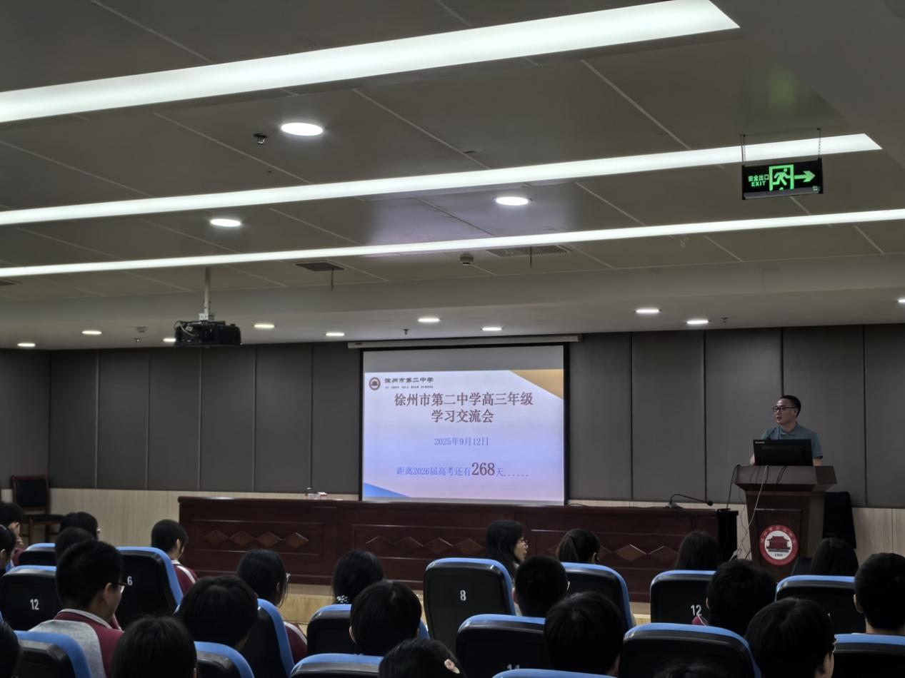 为优化备考策略,激发学习热情,我校近日在大礼堂举办了高三年级学习交流会。会议由高三年级处马博主任主持并担任主讲,全体高三学生参加。