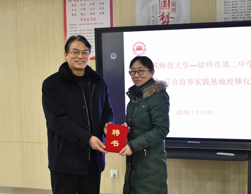 1月10日,江苏师范大学——徐州市第二中学研究生联合培养实践基地授牌仪式在我校举行。江苏师范大学研究生院院长黄德志教授、教师教育学院院长吴晓红教授、黄晓学教授,徐州市第二中学校长李桂强、副校长刘阳 ,我校教师代表及前来实习的江苏师大硕士研究生们参加了授牌仪式。