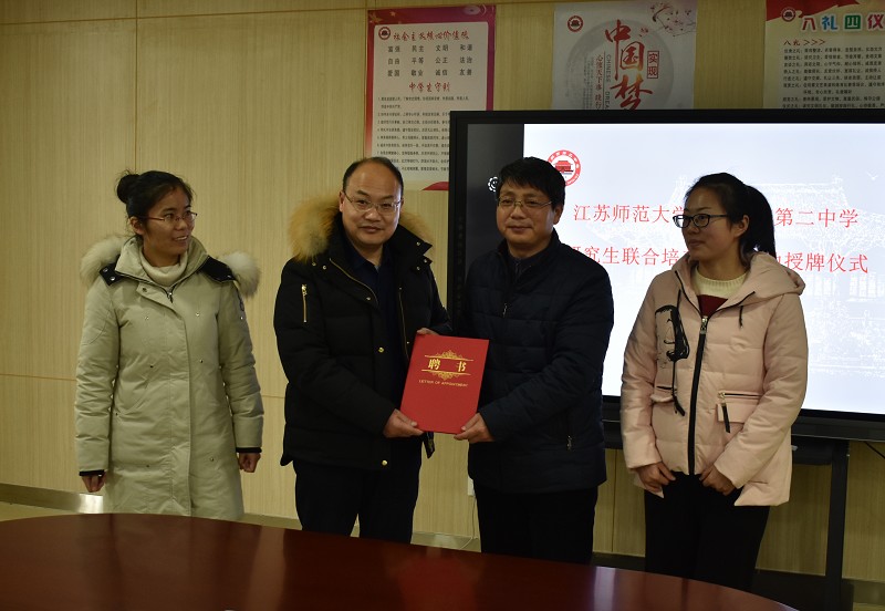 随后,双方共同签署了合作协议书,举行了联合培养研究生实践基地授牌仪式。授牌仪式后,观摩了我校青年教师的示范公开课,并进行了教学研讨。本次实践教学基地的建立是我校与江苏师范大学的良好对接,是校校合作双赢、共谋发展的重要举措,将有力地推动我校教育教学工作的更快发展。