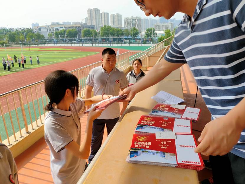 宣誓结束后,校领导为高三年级学生颁发成长记录卡,记录成长足迹,收藏奋斗时光。