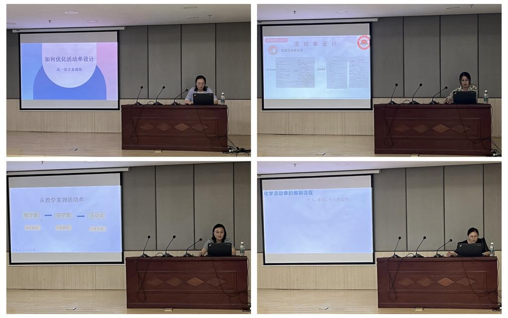 自2021年,我校就开展了“基于课程标准的卷入式活动单教学”改革项目,在本次研修活动中于立、王真、宗笑颖、张文华四位教师对活动单使用进行了交流分享,从四位教师的交流可以看出,本学期的活动单教学又上了一个新台阶,活动单设计更加优化,活动单教学更加扎实有效。