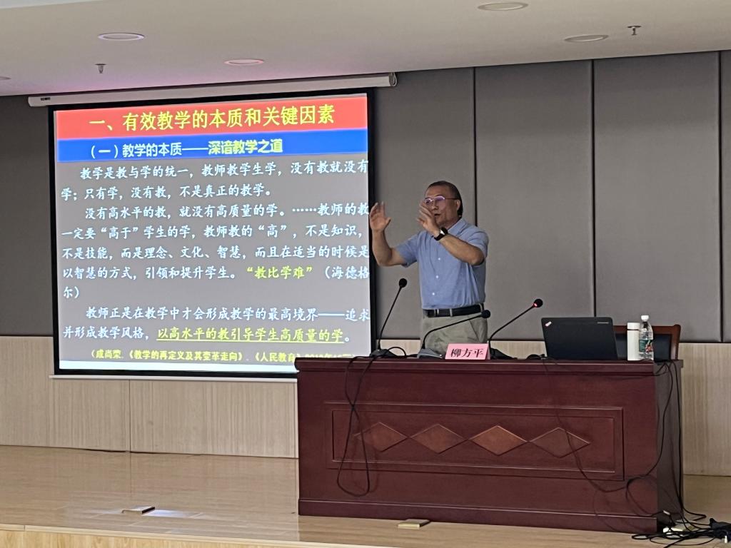 江苏省特级教师柳方平,作了题为《教学设计:实施有效教学的关键》的专题报告。他说明了有效教学的本质和关键因素,分析了当前学科教学设计中的问题,就如何进行有效课堂教学设计给我们做了具体、实用的指导。