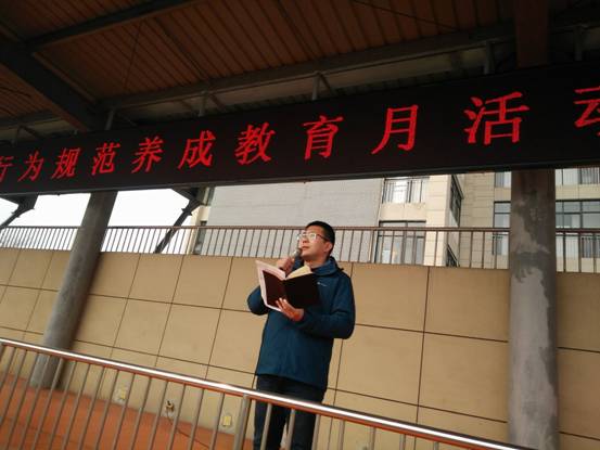 德育处王峰主任解读了《学生行为规范养成教育月实施方案》,希望全体同学能从自身做起,认真学习、文明礼貌、爱护环境、注意安全,做一个行为规范、品行优秀的人,养成良好的习惯,开创美好人生。