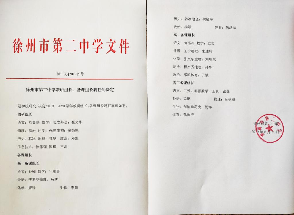 关于教研组长、备课组长聘任的通知