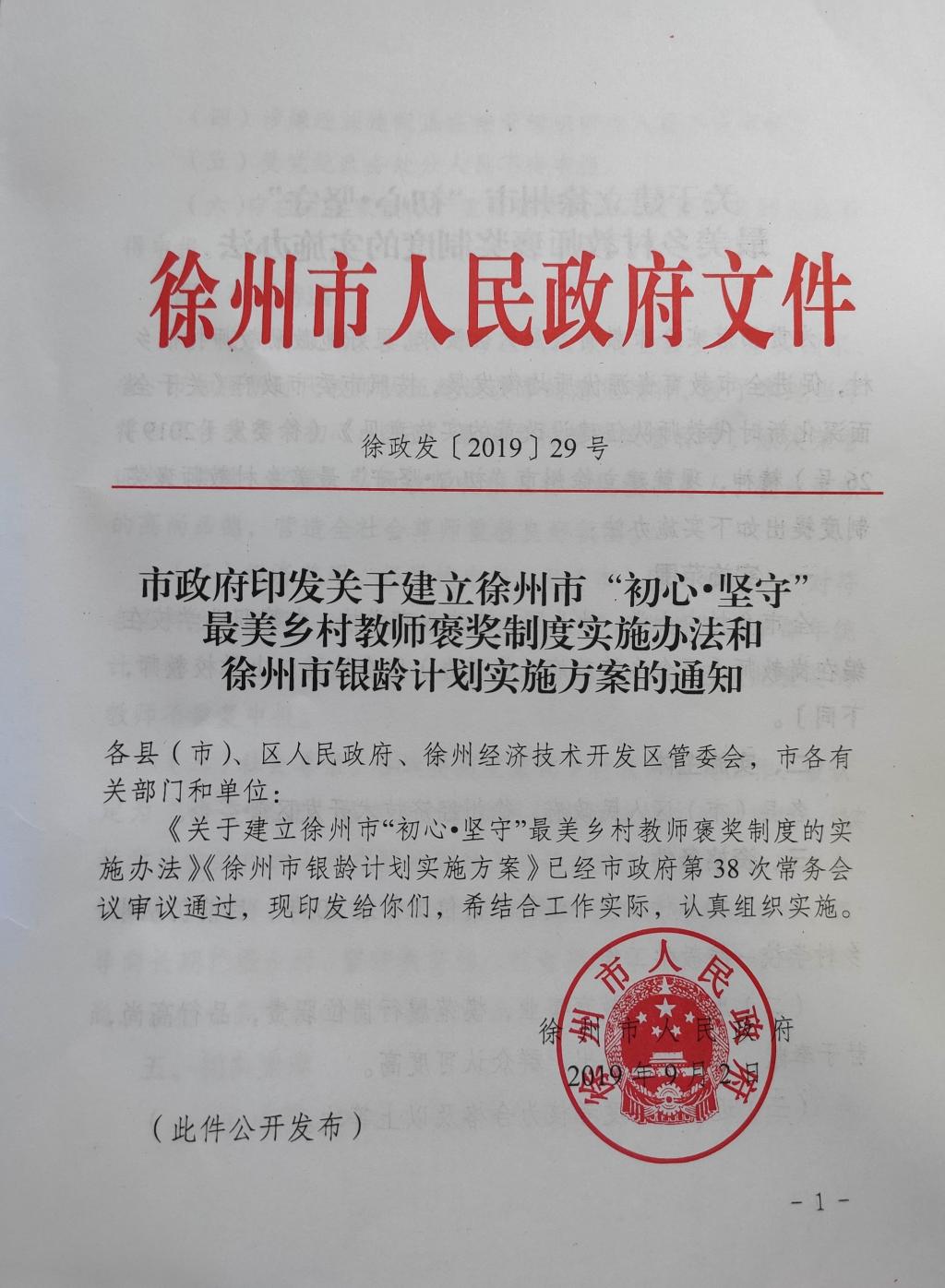 关于建立徐州市“初心.坚守”最美乡村教师褒奖制度实施办法和徐州市银铃计划实施方案的通知