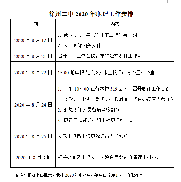 徐州市第二中学2020年职评工作安排