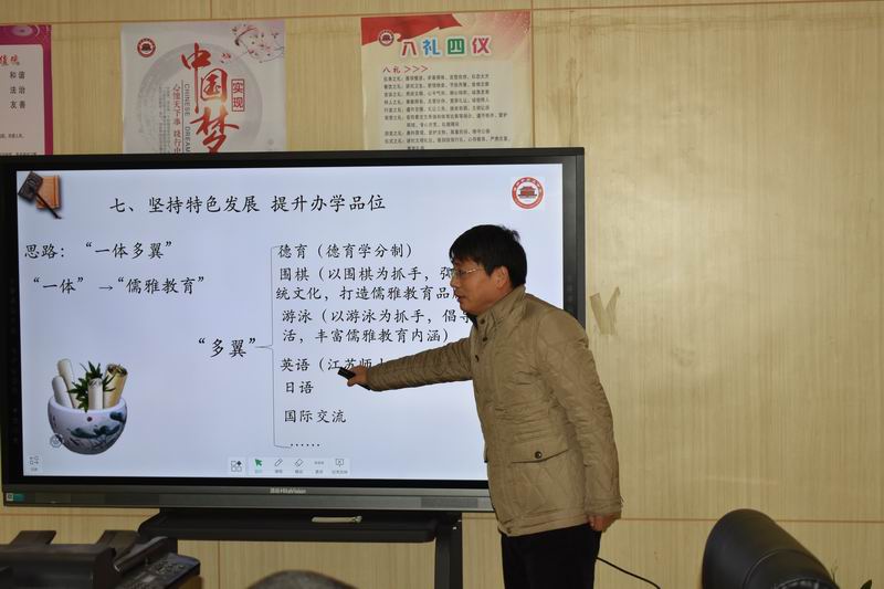 督导组领导肯定了学校的发展成绩:一是学校管理思路宽并建立了良好机制;二是教育教学抓的紧且取得了不易的成绩;三是特长教育起步早并形成了明显的优势。督导组殷切希望学校进一步推进内涵建设,不断创新,努力办好人民满意的教育。