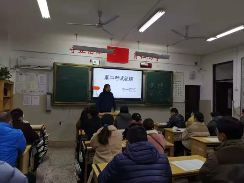 11月25日下午,我校召开高一年级家长会,高一各班班主任就期中考试后班级情况做了详细的介绍,并对学科成绩优秀学生、进步较大学生和单科成绩优秀学生进行表彰,各班任课老师也就期中考试反映出的问题向家长们做了分析。会上对下一阶段学生的多元化发展进行解读,对开设小语种班、音乐班做了介绍。