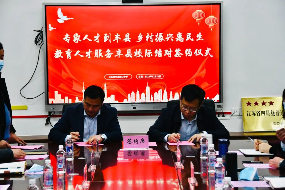 为有效落实市委支持丰县补短板惠民生促发展意见举措,紧紧围绕乡村教育人才队伍建设,充分发挥教育系统优秀人才对口帮 扶带动作用,积极引导和支持教育优秀人才深入基层,开展“组团式”帮扶,带动丰县乡村教育质量整体提升。11月11日, 徐州市委教育工作委员会副书记、市教育局党委委员刘艳带领专家团一行,举行了教育人才服务丰县校际结对签约仪式,我校与丰县华山中学签约结对。