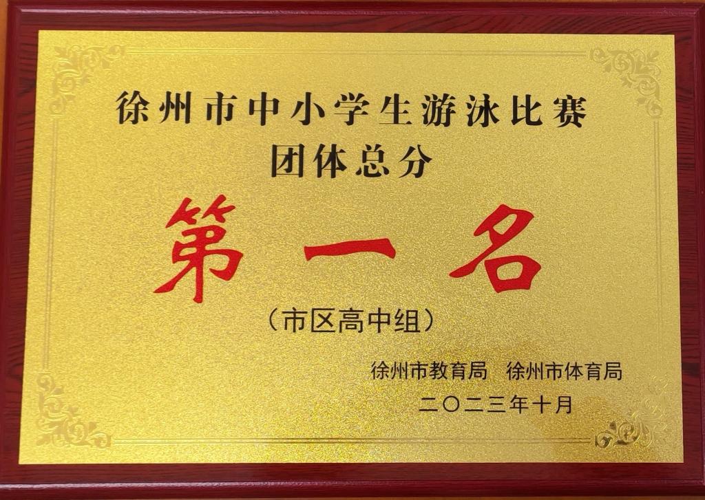 10月28日下午,徐州市中小学生游泳比赛在徐州市云龙区游泳馆结束,我校蝉联高中组团体总分第一名。
