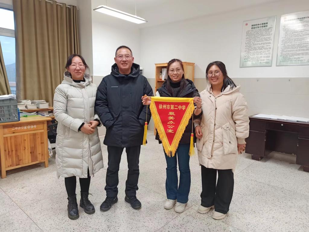 2023年12月,我校工会根据《开展徐州市第二中学“最美办公室”评比活动通知》要求继续开展各项工作。各工会小组积极宣传,全校办公室积极行动、整改前期存在问题。依据检查小组12月四次检查和平时抽查情况,评比出:办-401、办-203、办-305、办-312四间办公室获得活动一等奖。1月8日下午,工会主席朱洪磊为他们现场颁发“最美办公室”流动红旗。