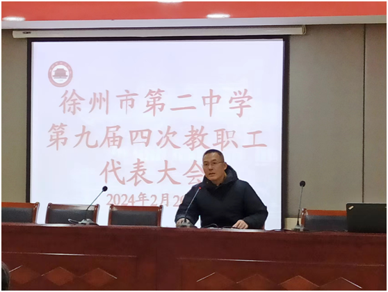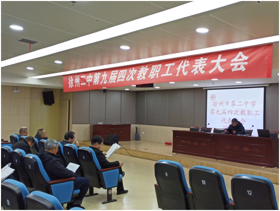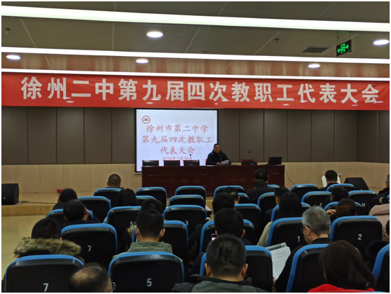 为更好地促进学校快速发展,建立健全我校各项制度,2月20日,徐州市第二中学第九届四次教职工代表大会在格致楼5楼报告厅隆重召开,全体校领导、第九届教职工代表大会正式代表、列席代表共45人参加会议。