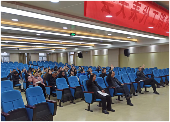 分组审议后,全体代表举手表决《徐州市第二中学职评分值权重及量化考核内容(讨论稿)》、《徐州市第二中学专业技术人员岗位晋级实施方案(征求意见稿)》,最后以45票赞成、0票反对、0票弃权,全票通过!表决之后,朱洪磊主席宣读了大会决议,大家一致掌声通过支持。