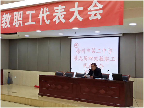 下午3时,在嘹亮的国歌声中,徐州市第二中学第九届四次教职工代表大会正式开始。