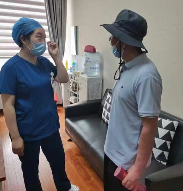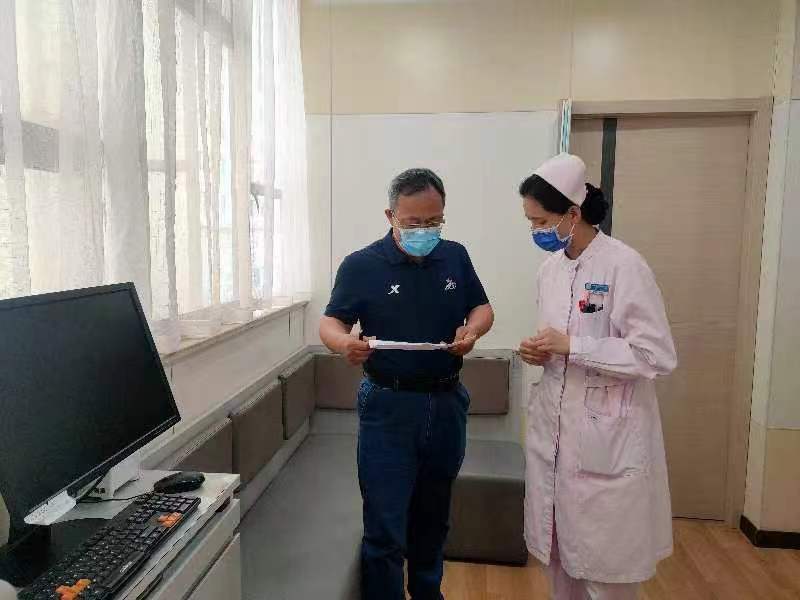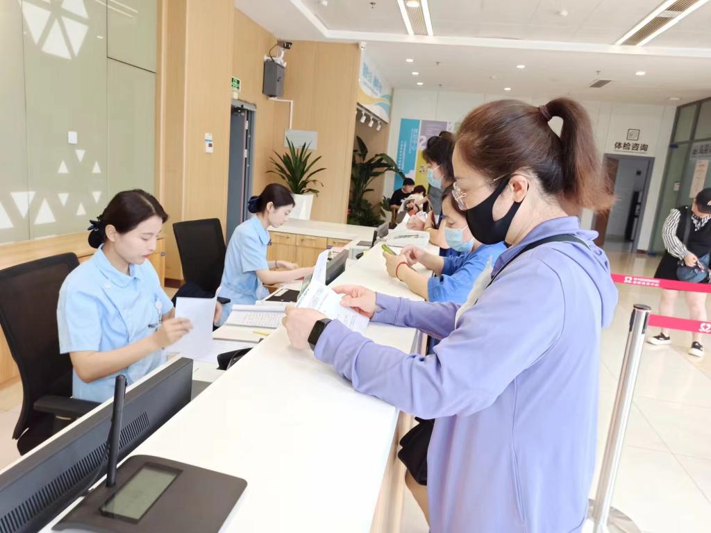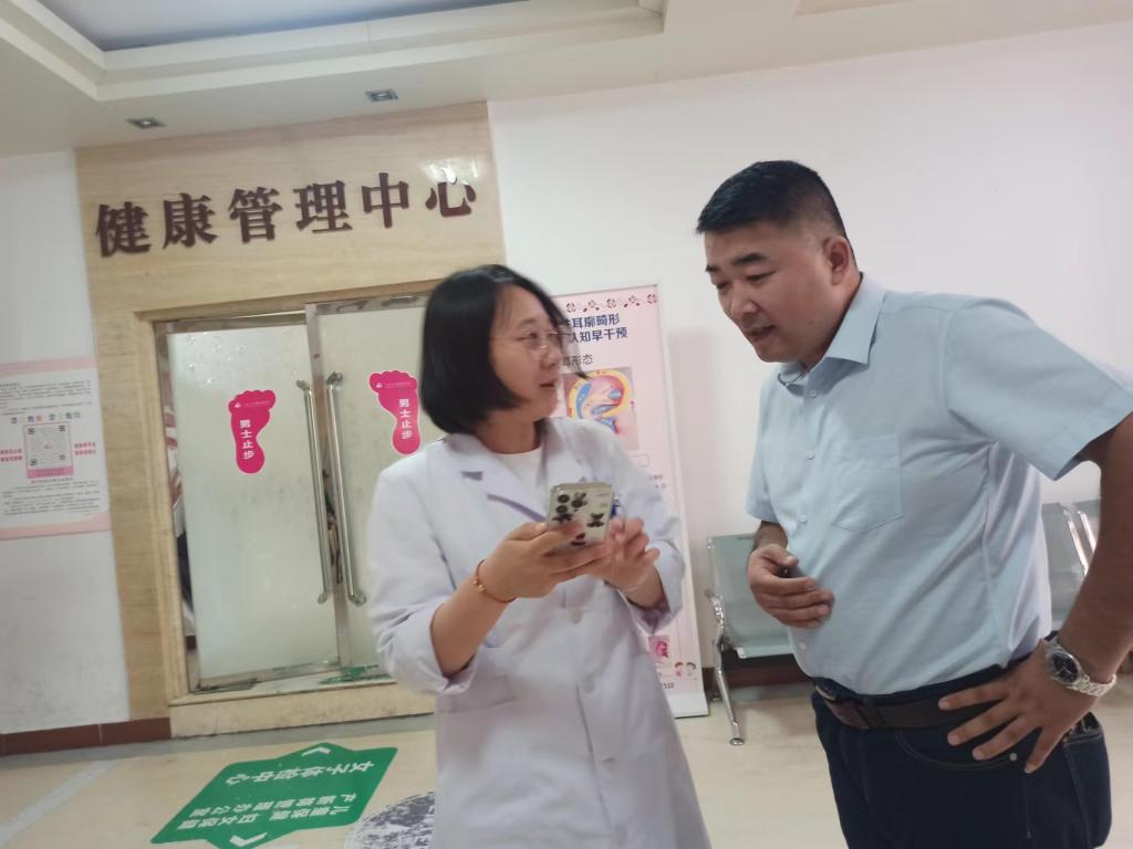 比评小组对徐州市中医院体检中心进行考察,吴杞霄老师就体检相关问题与医护人员进行交流。