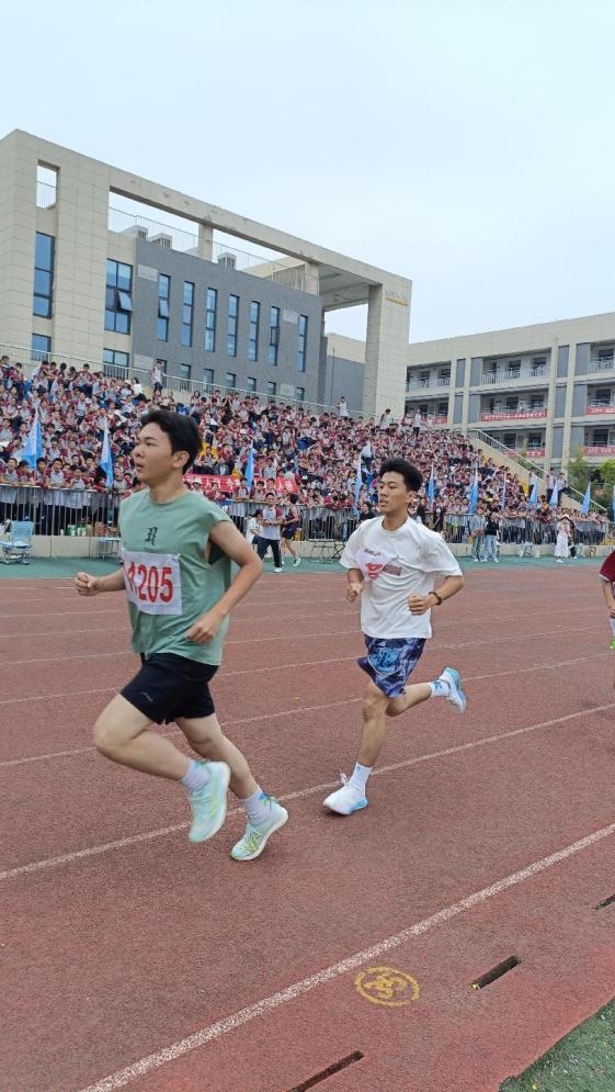 跳高的同时是男子400米比赛!400米的跑道上,你正在飞驰,面对如此遥远的路途,你也许腿脚发麻,你也许有些茫然。但你知道,在你身后,有同学们一双双期待的眼睛;在你身后,是你日日苦练的汗水。虽然没有拿到一个好的名次,但是你拼搏啦!努力了就是一种勇气!加油高一12班同学们!下届运动会再战!
