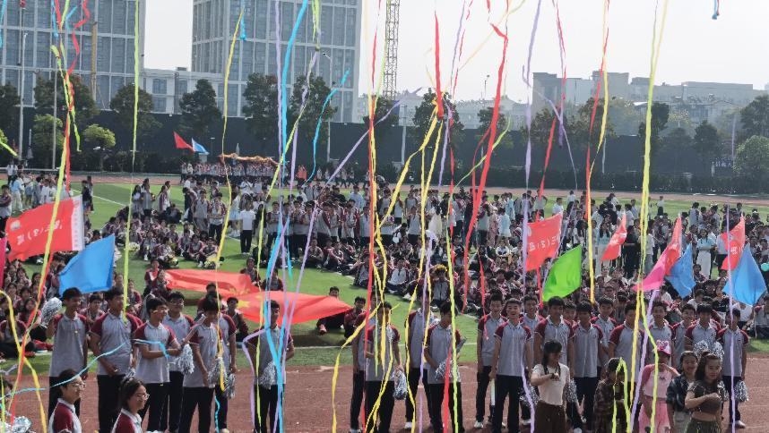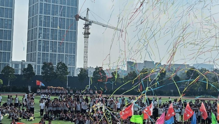 五十几道花束飞来,象征着高一12班对运动会的憧憬与信心!