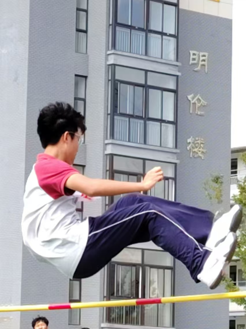 在第一个比赛日里,高二8班的运动健儿们在田径场上充分地发挥了体育精神,展现出了独属于8班的体育风范。最早进行男子跳高比赛上,本班选手王童欣通过一次次努力获得了银牌,一次又一次地在空中跃出优美弧线,获得了比赛胜利。
