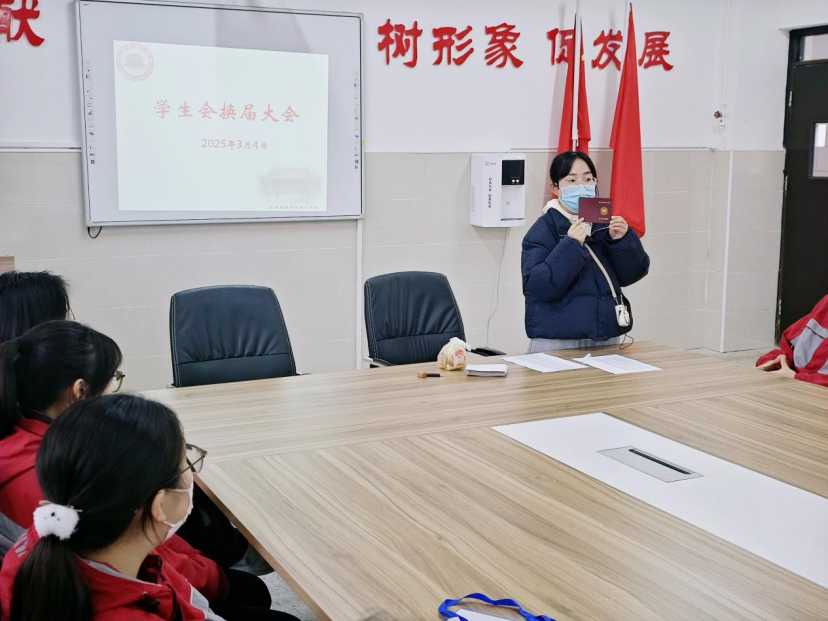 换届仪式后2025届学生会全体成员领取学生会臂章并召开首次工作会议。