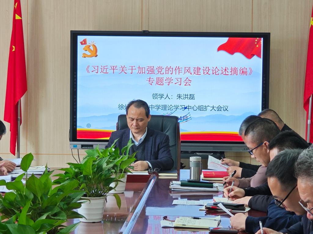 4月11日上午10点,徐州二中党委在务本楼319会议室举行了专题学习会, 深入学习《习近平关于加强党的作风建设论述摘编》。此次学习由党委成员朱洪磊领学,王运思、张功忠、刘阳、刘洋及全体中层干部参加了学习。