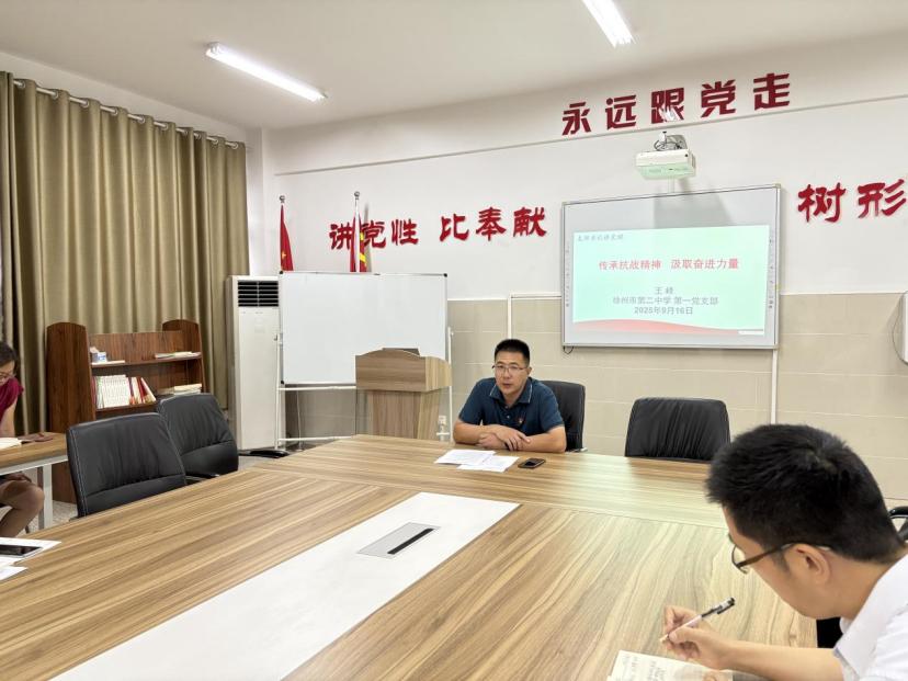 为深入学习贯彻习近平新时代中国特色社会主义思想,弘扬伟大抗战精神,筑牢党员理想信念根基,9月16日16:15,我校第一党支部开展主题党日活动,会议由第一支部书记王峰同志主持,全体党员参会。
