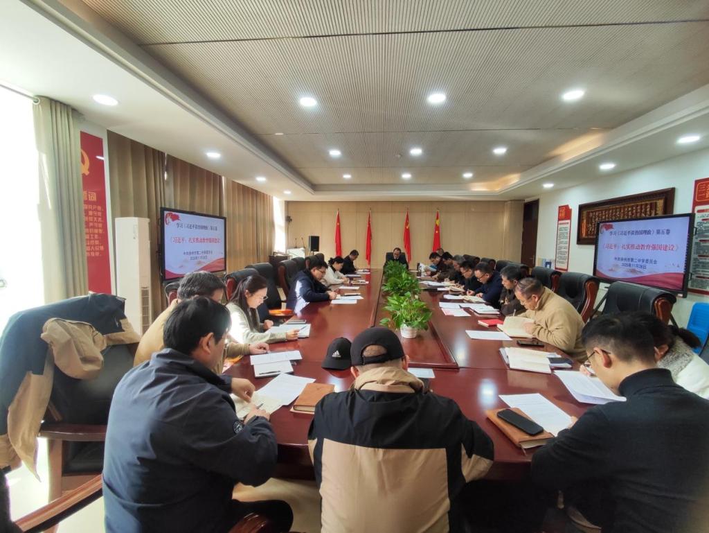 为深入学习贯彻《习近平谈治国理政》第五卷精神,深刻领会习近平总书记关于扎实推动教育强国建设的战略部署,切实把思想和行动统一到党中央决策要求上来,11月28日,徐州市第二中学党委理论学习中心组在319会议室召开专题学习会,先集中观看“先锋淮海党员大课堂”(第2期)视频培训班线长直播活动,然后围绕《习近平:扎实推动教育强国建设》展开集中学习研讨。学校党委领导班子成员、中层干部参加会议,党委委员、工会主席朱洪磊领学。