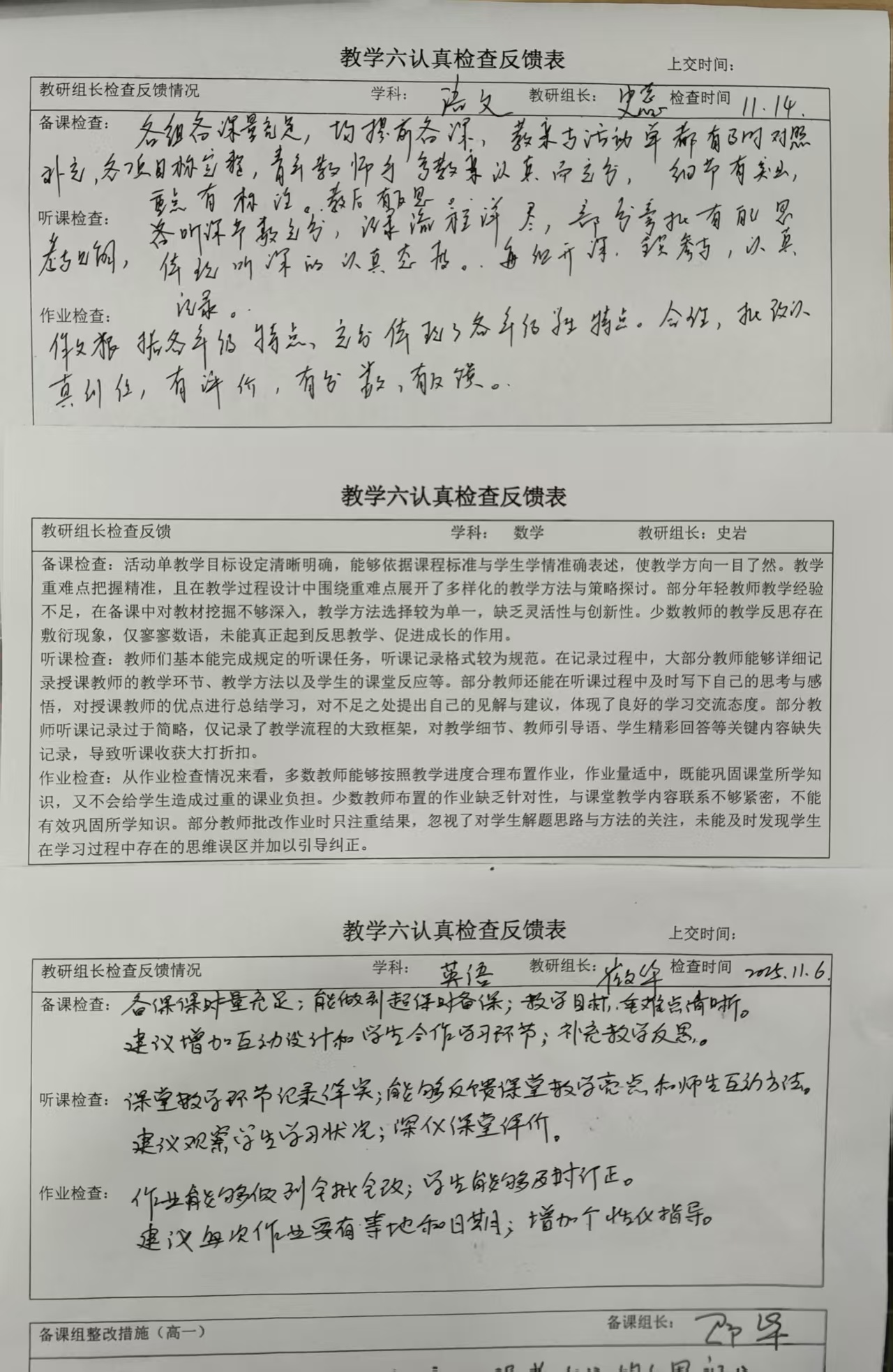 本次期中教学检查整体情况良好,充分展现了我校教师队伍严谨治学、精益求精的教学风貌。检查结果显示,绝大多数教师均能严格按照规范要求,在备课、上课、作业布置与批改、听课评课等核心环节认真履职,教学常规工作扎实有序,整体水平值得肯定。但结合检查细节,以下问题仍需各位教师予以关注并重点改进: