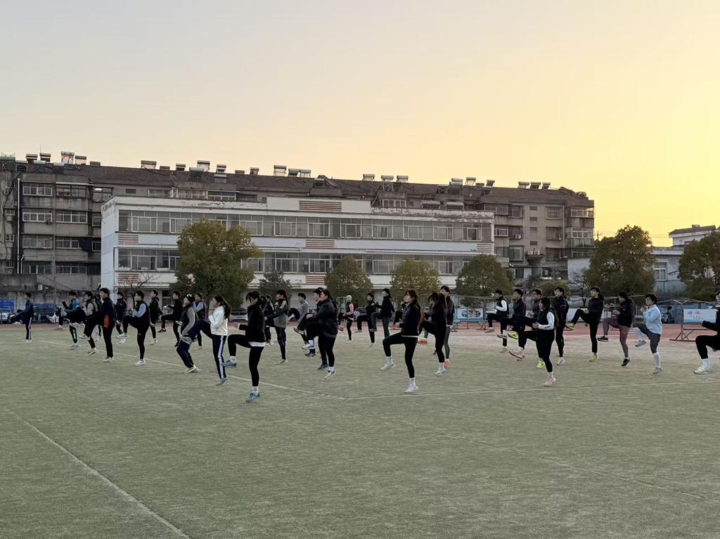 训练从一套规范、专业的热身关节操开始,学生们动作整齐划一,态度认真专注,展现了良好的训练素养。随后,我校教师全程观摩了一堂结构完整、强度合理、内容扎实的高考体育专项训练课。训练课组织严谨,教练指导细致,学生执行高效,整个流程科学流畅,充分体现了棠张中学训练工作的系统性与专业化水平。热火朝天的训练场面和师生昂扬的精神面貌,给我校观摩团队留下了极其深刻的印象。