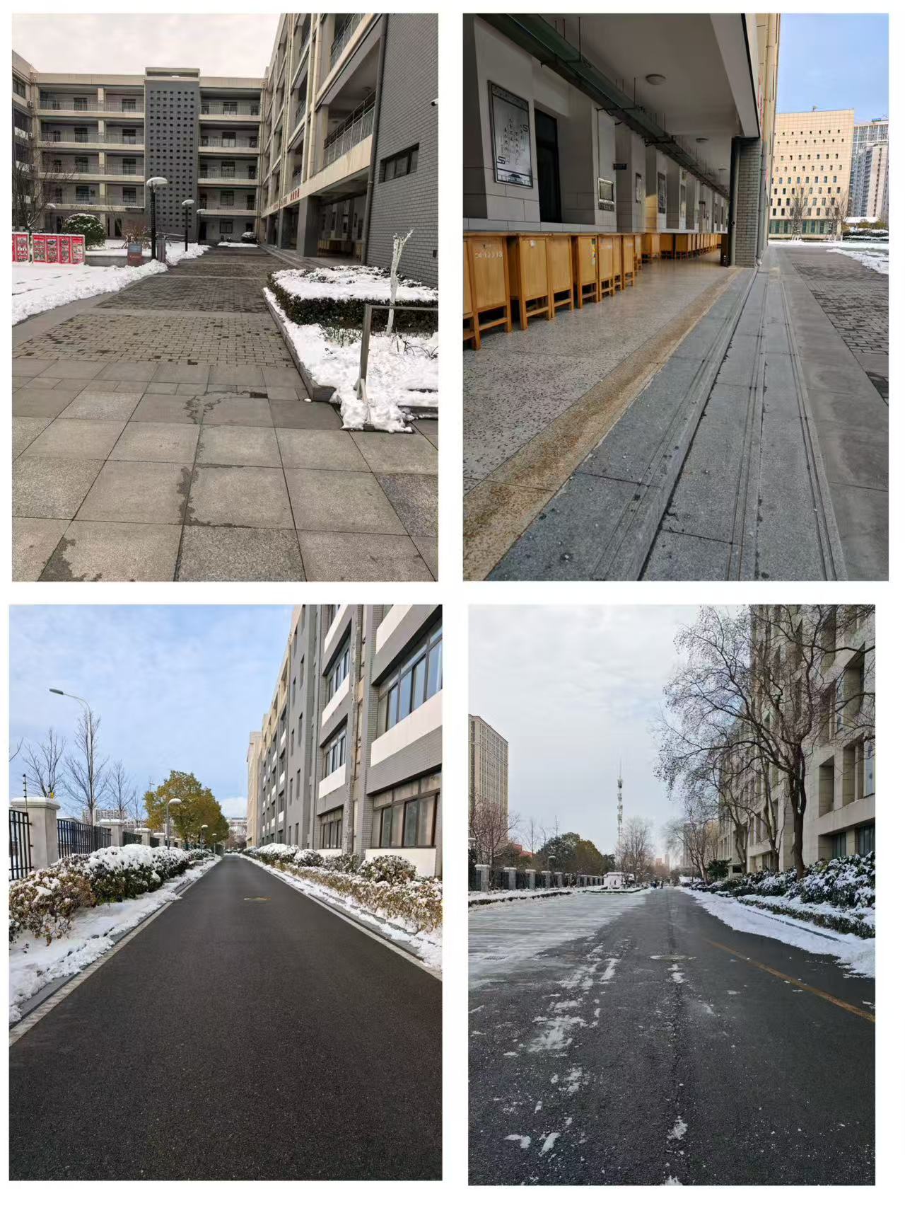 调度会后,全体工作人员闻令而动,立即投身清雪除冰第一线。尽管校园因停课而显得安静,但这里却是一片热火朝天的奋战景象。各部门分工明确,协同作战。