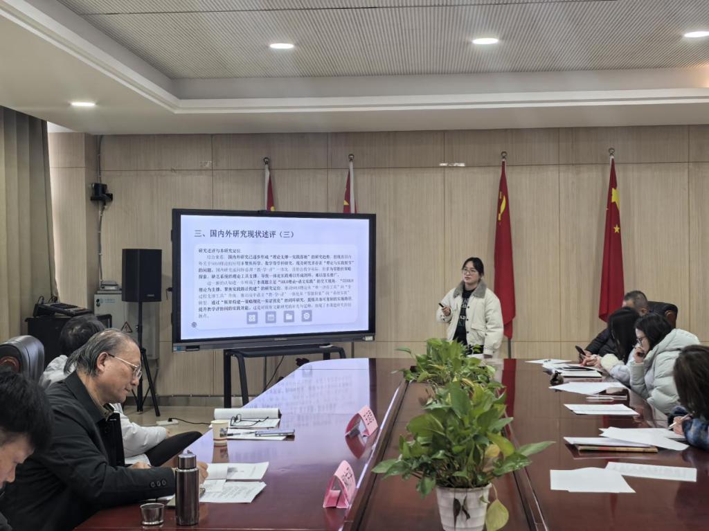 结题评审结束后,《SOLO分类理论视域下的高中语文“教.学.评”一体化实现路径研究》开题报告会正式启动。课题主持人高婷婷老师作开题报告,详细阐述了课题的研究背景、核心概念、研究目标、研究内容、研究方法、实施计划及预期成果等核心内容。听取开题报告后,专家们展开深入论证,对课题的研究价值、研究思路给予高度肯定,认为课题选题贴合高中语文教学改革方向,理论视角新颖,研究针对性强,具有重要的理论与实践意义。同时,专家们就课题研究的重点、难点及实施过程中的注意事项进行指导,为课题后续有序开展指明了方向,助力课题研究提质增效。