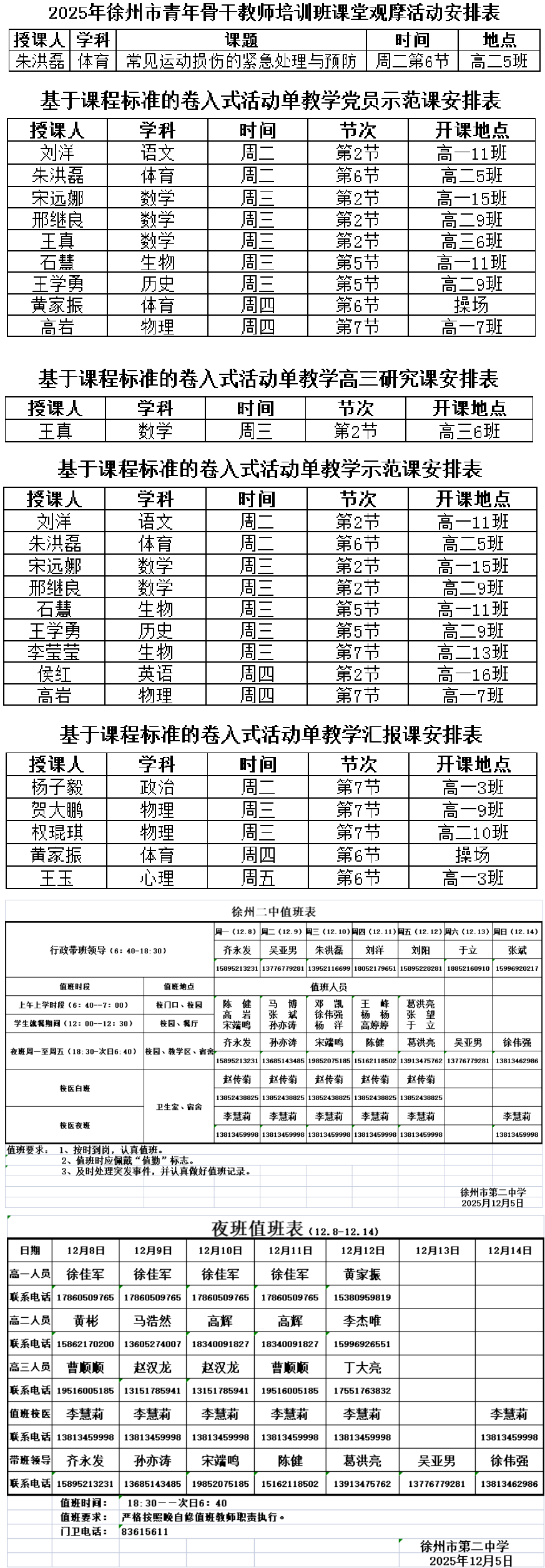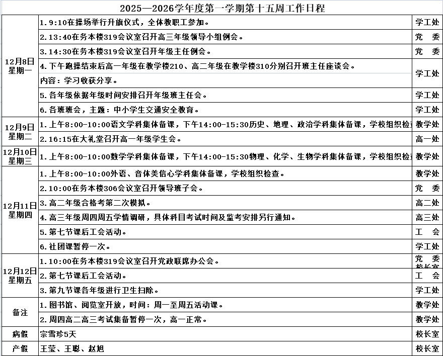 2025—2026学年度第一学期第十五周工作日程