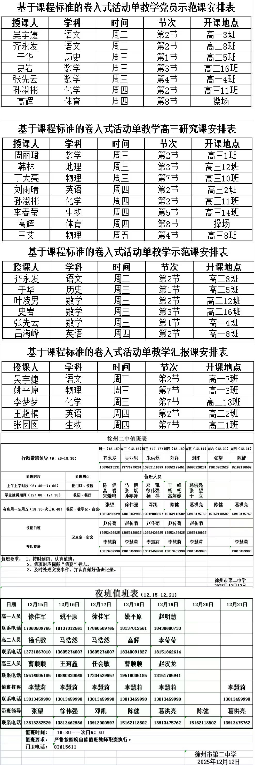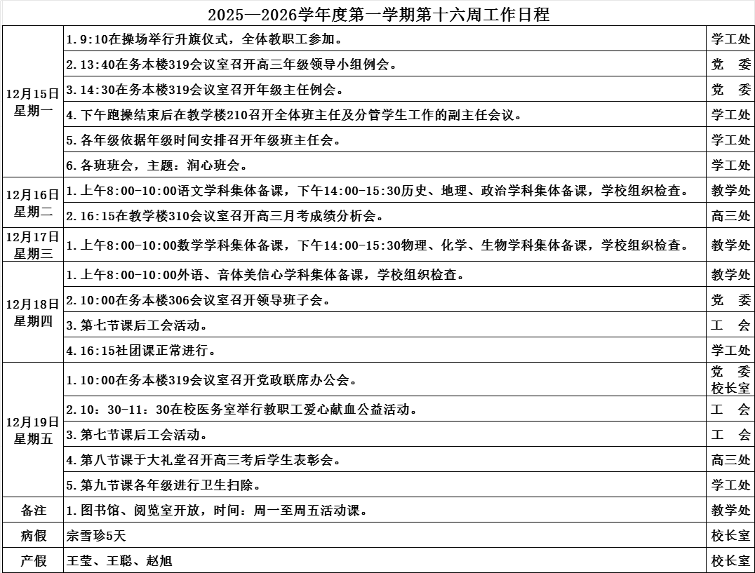 2025—2026学年度第一学期第十五周工作日程