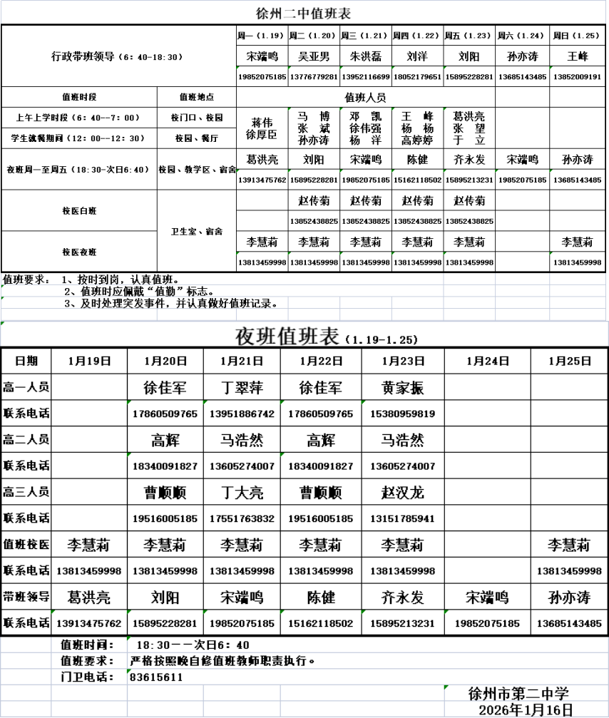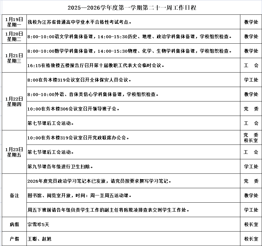 2025—2026学年度第一学期第二十一周工作日程
