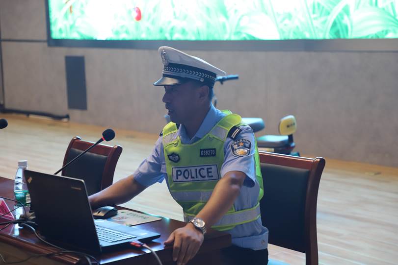 接着,刘宏建指导员给大家带来了精彩的交通法规及交通安全教育讲座,刘指导针对大家在非机动车骑行中存在的常见违规行为,分析了其危险性,要求大家要安全文明骑行。从一个个鲜活的事例中,全校师生受到了启发,得到了警示。