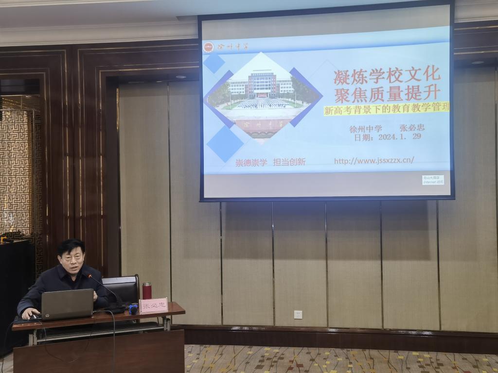 张校长作了题为《凝炼学校文化 聚焦质量提升——新高考背景下的教育教学管理》的专题讲座。张校长从办学理念、教育理念、师生培养目标、一训四风等方面向参训干部介绍了徐州中学。作为一所新建学校,徐州中学凝聚共识,完善教师培养和管理机制,打造徐州中学团队文化。张校长的介绍全面具体细致,聚焦整体和局部,为我们探索新高考背景下学校管理、教研提质、德育提质提供了新路径。