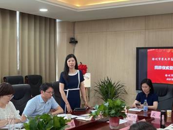 徐州市第二中学孟彦校长莅临活动现场,他充分肯定了崔文华老师在教育教学工作上的突出成绩,对工作室的成立表示热烈的祝贺并提出希望,叮嘱学员们关注课堂教学、打造特色系列活动、提高整体教学和科研水平,敦促工作室发挥辐射带动作用,惠及更多的教师,并利用工作室的高中和高等教育相结合的优势,创建大外语教学氛围。