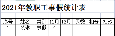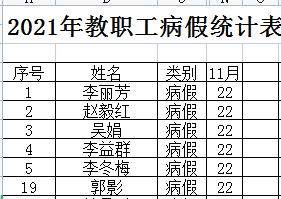 2021年11月教职工病事假统计