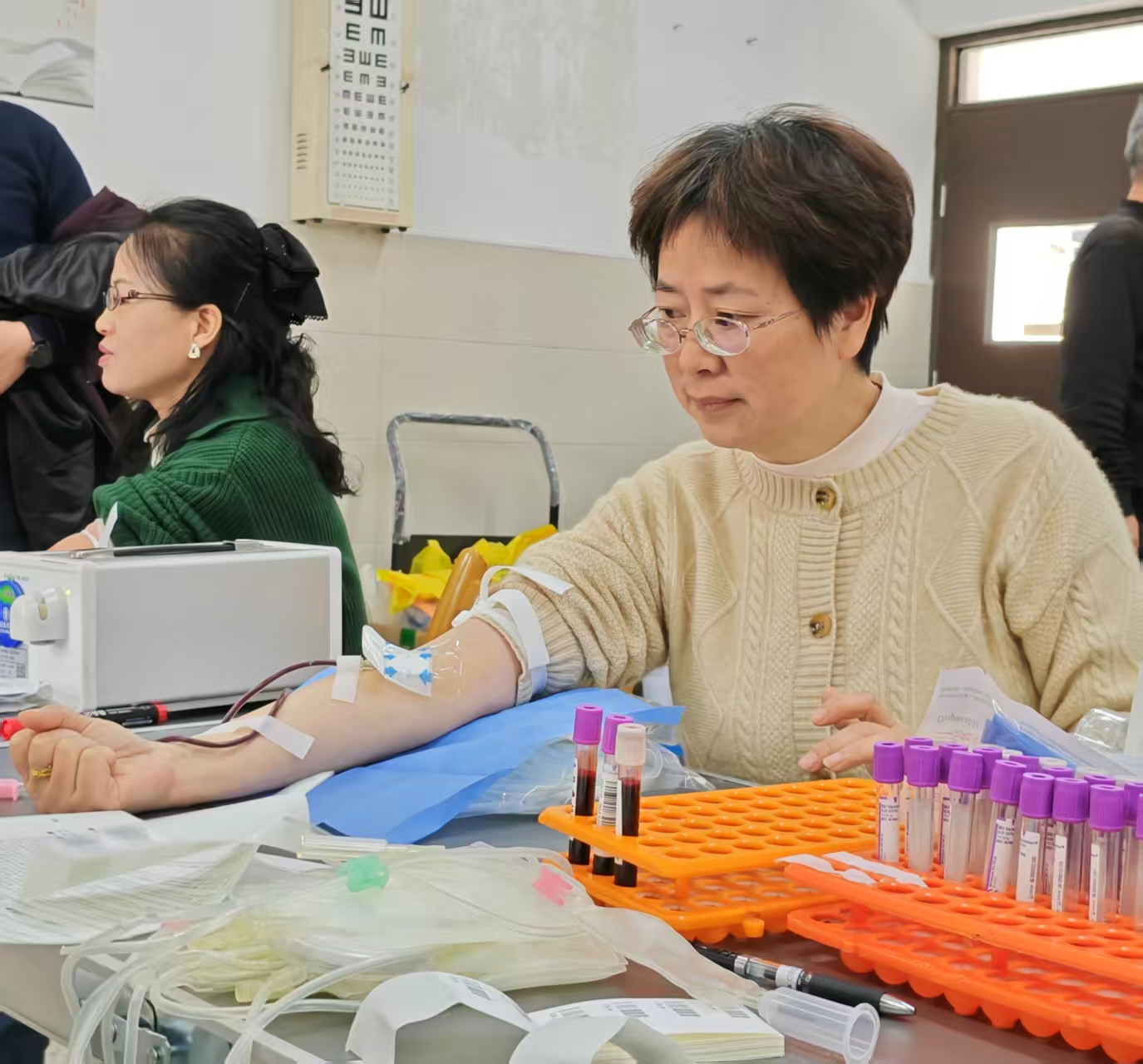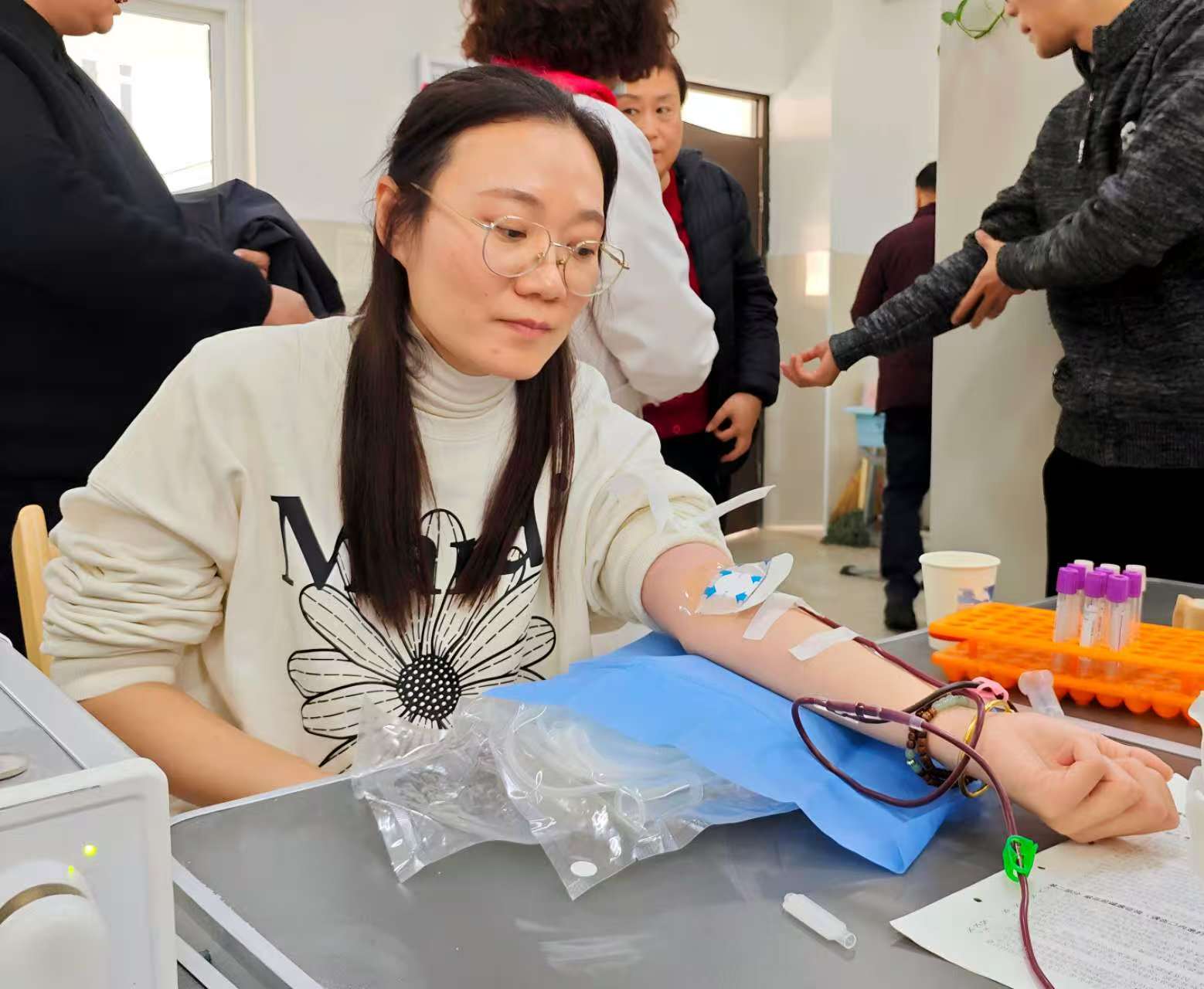 无论是初次献血的“新人”,还是多次参与的“老将”,此刻他们都眼神坚定且温暖。报名参与爱心献血活动教职工有:王运思、刘阳、刘洋、齐永发、吴亚男、朱洪磊、王磊、张斌、刘春侠、张存荣、张望、拾景爱、黄彬、武海兰、于立、陈夯、蔡小蕾、宋端鸣、吕廷新、杜梅、董涛、焦祥磊、郭旭芃、刘霞、徐秀兰、李莹,共计26人。据统计,本次活动累计献血量达6300毫升。
